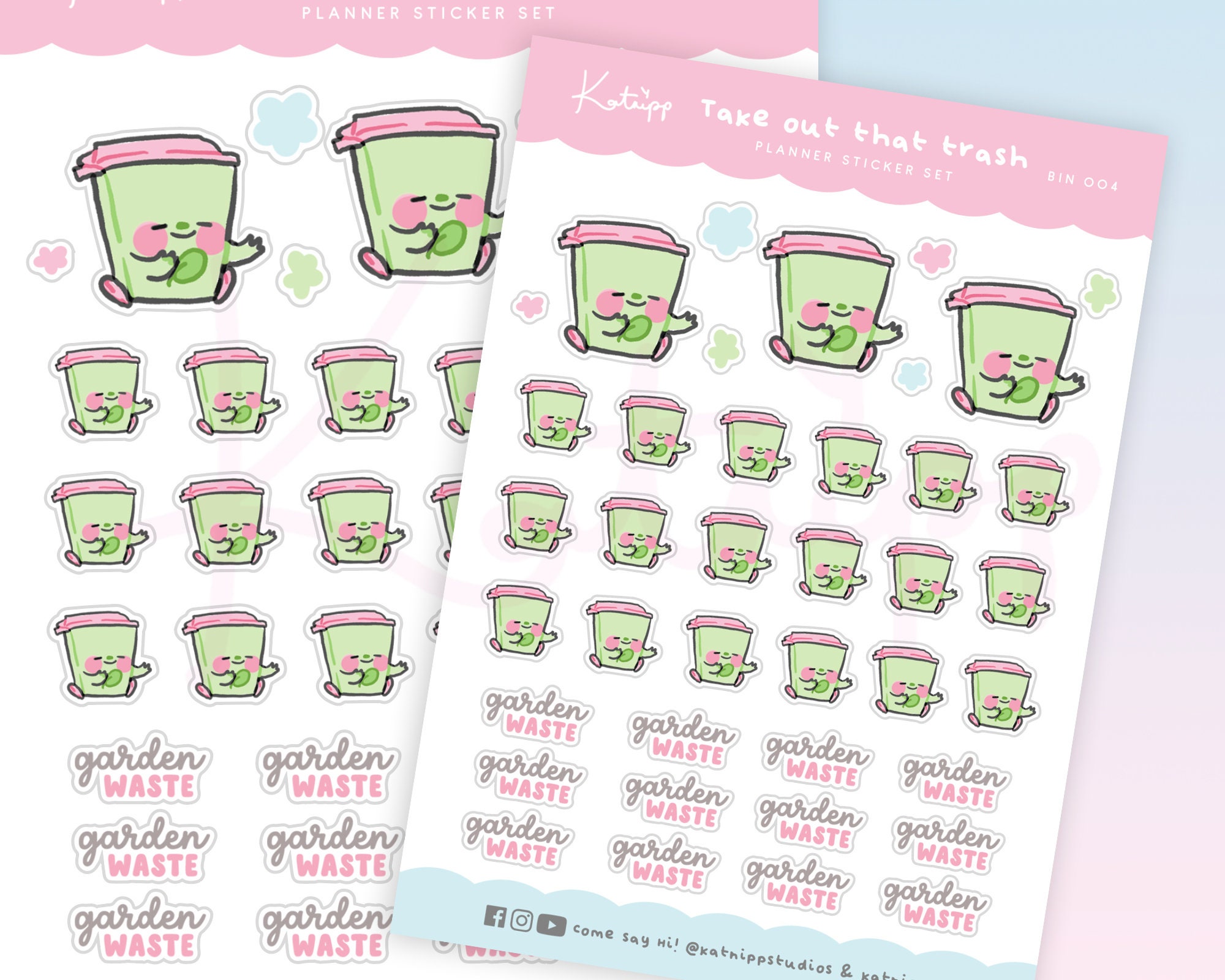 Trash Day Reminder Stickers Garden Waste Bin, Home Bujo Planner